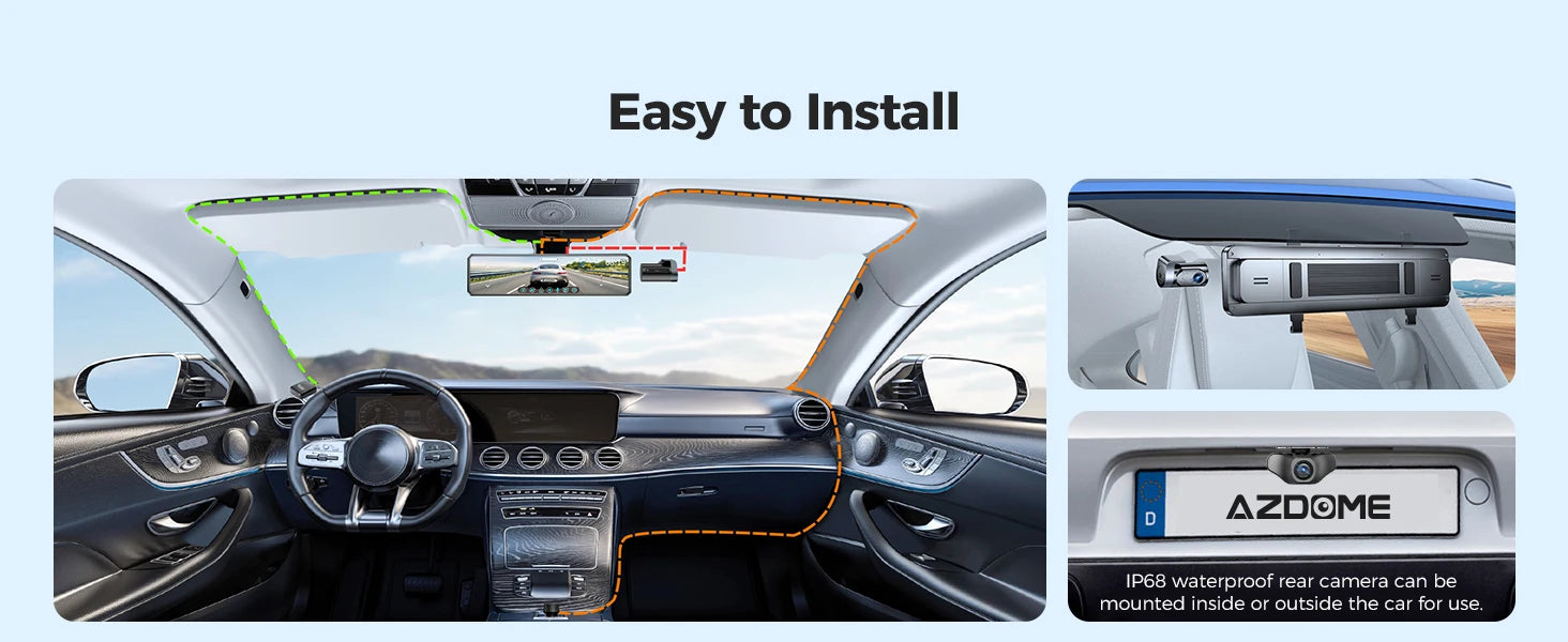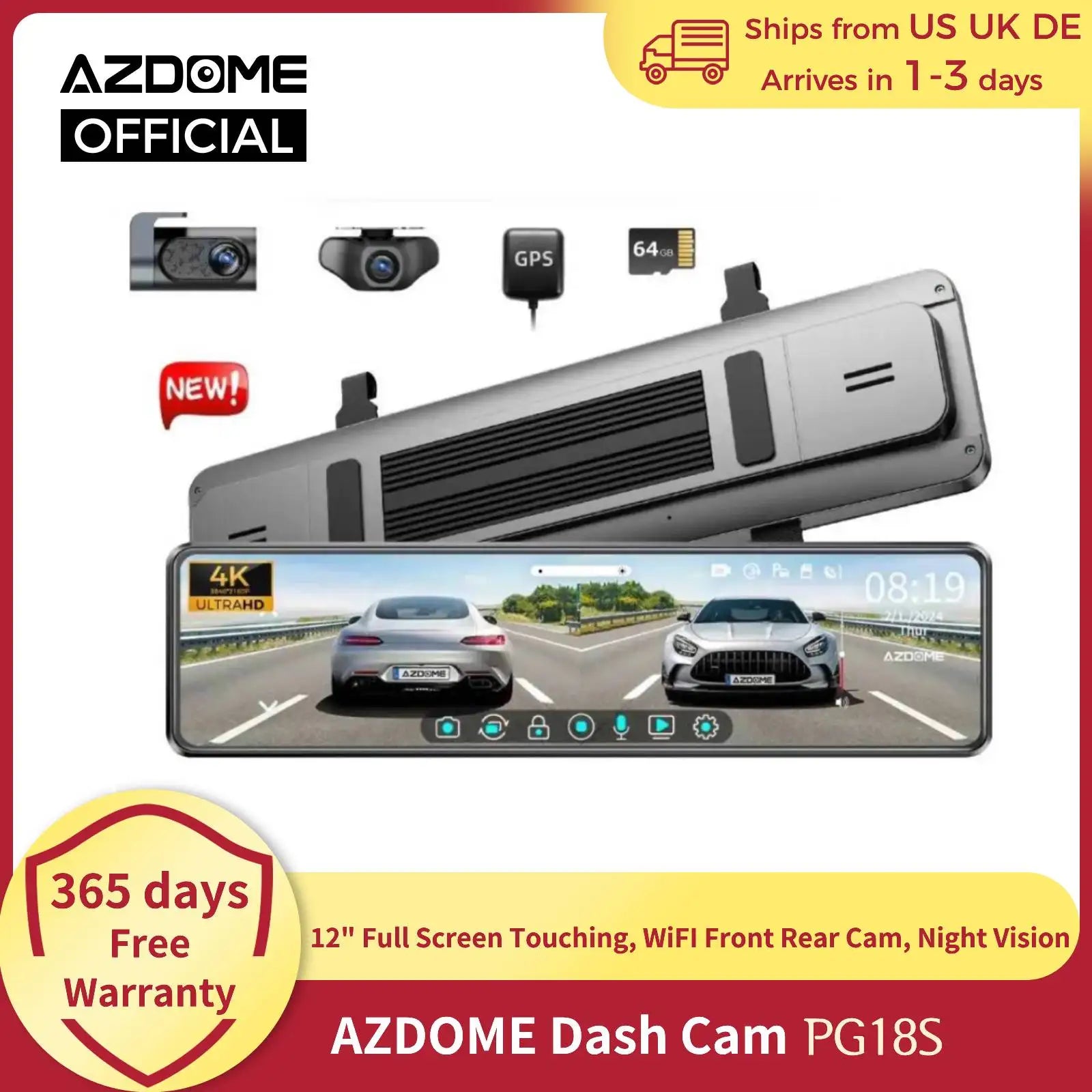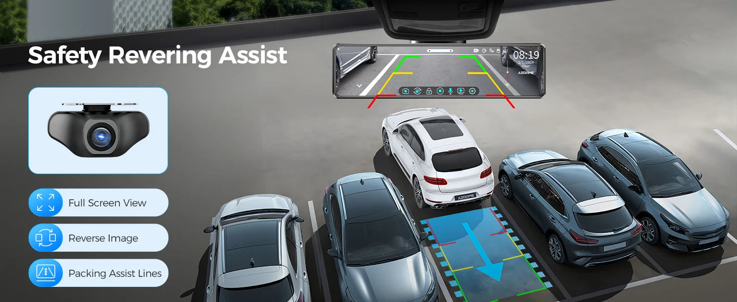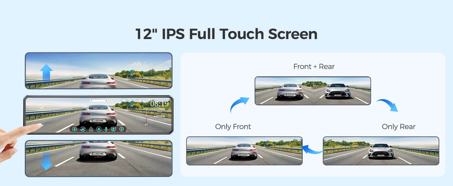 AZDOME PG18S WiFI Front Rear View Dash cam 12" Full Screen Touching Stream Mirror Car Dvr Camera FHD Video Recorder Night vision
