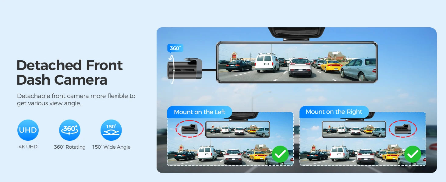 3.Attach the dash cam with the rearview mirror of the car
