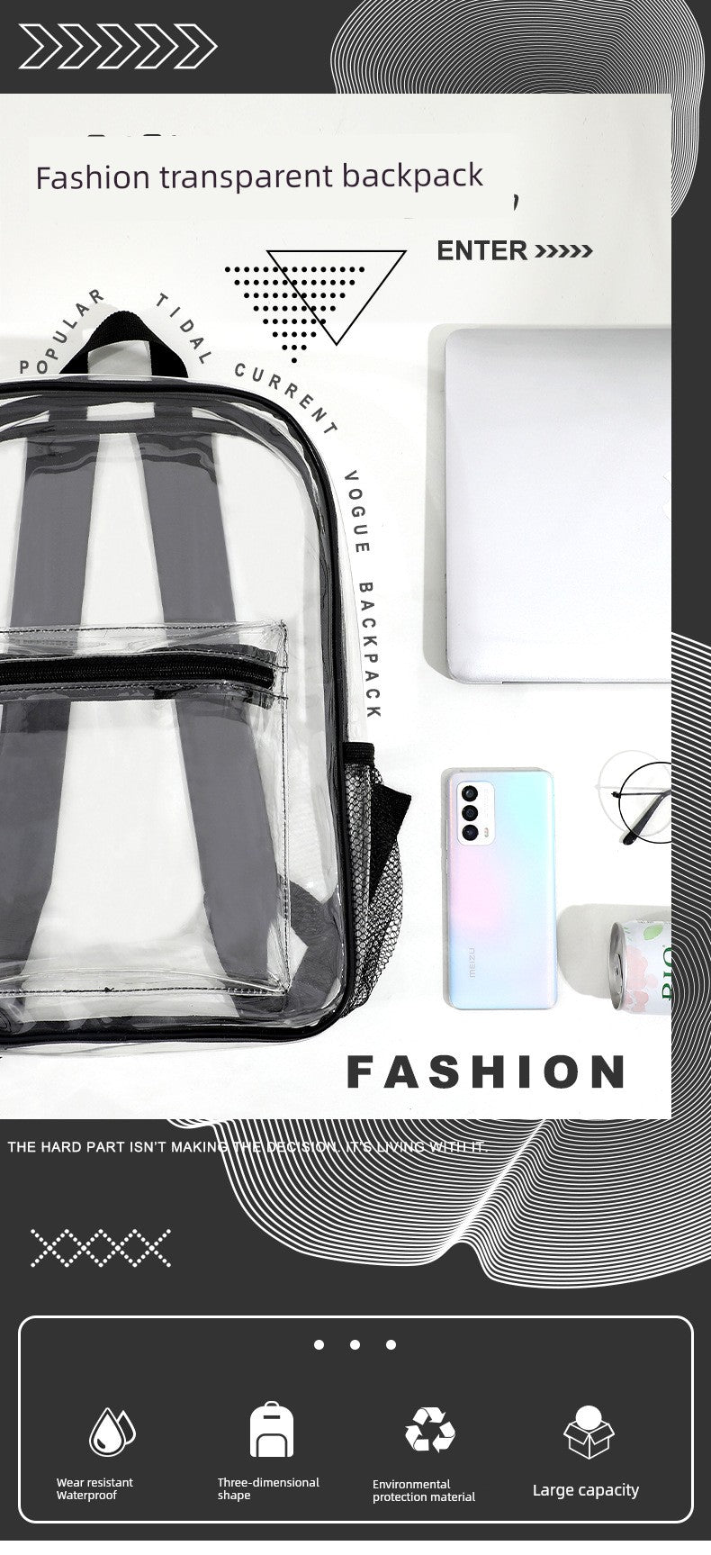 Transparent K-Style PVC Backpack - Trendy and Fashionable for Women