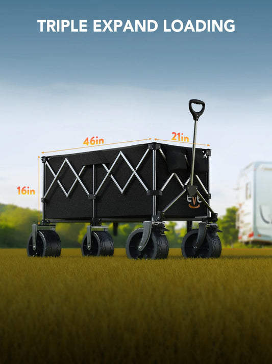 Gyroor Collapsible Wagon - Heavy Duty Foldable Cart, 440LBS Capacity with Side Pocket & Brakes, 66-Gallon Storage